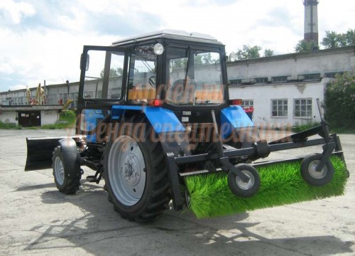 Трактор МТЗ с передним отвалом и щёткой.